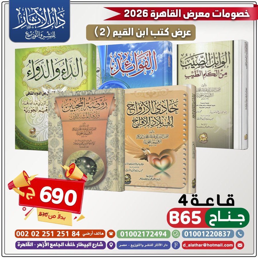 الوابل الصيب + الفوائد + الداء والدواء + حادي الأرواح + روضة المحبين
