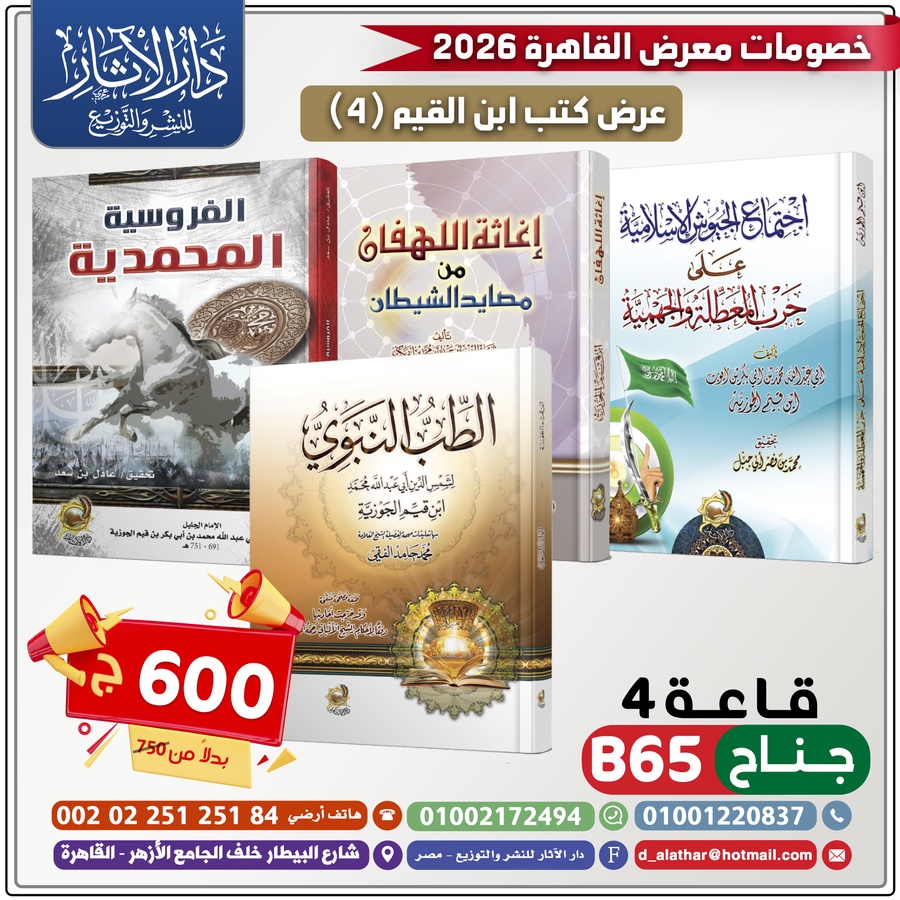 اغاثة اللهفان + اجتماع الجيوس الإسلامية+ الفروسية المحمدية + الطب النبوي