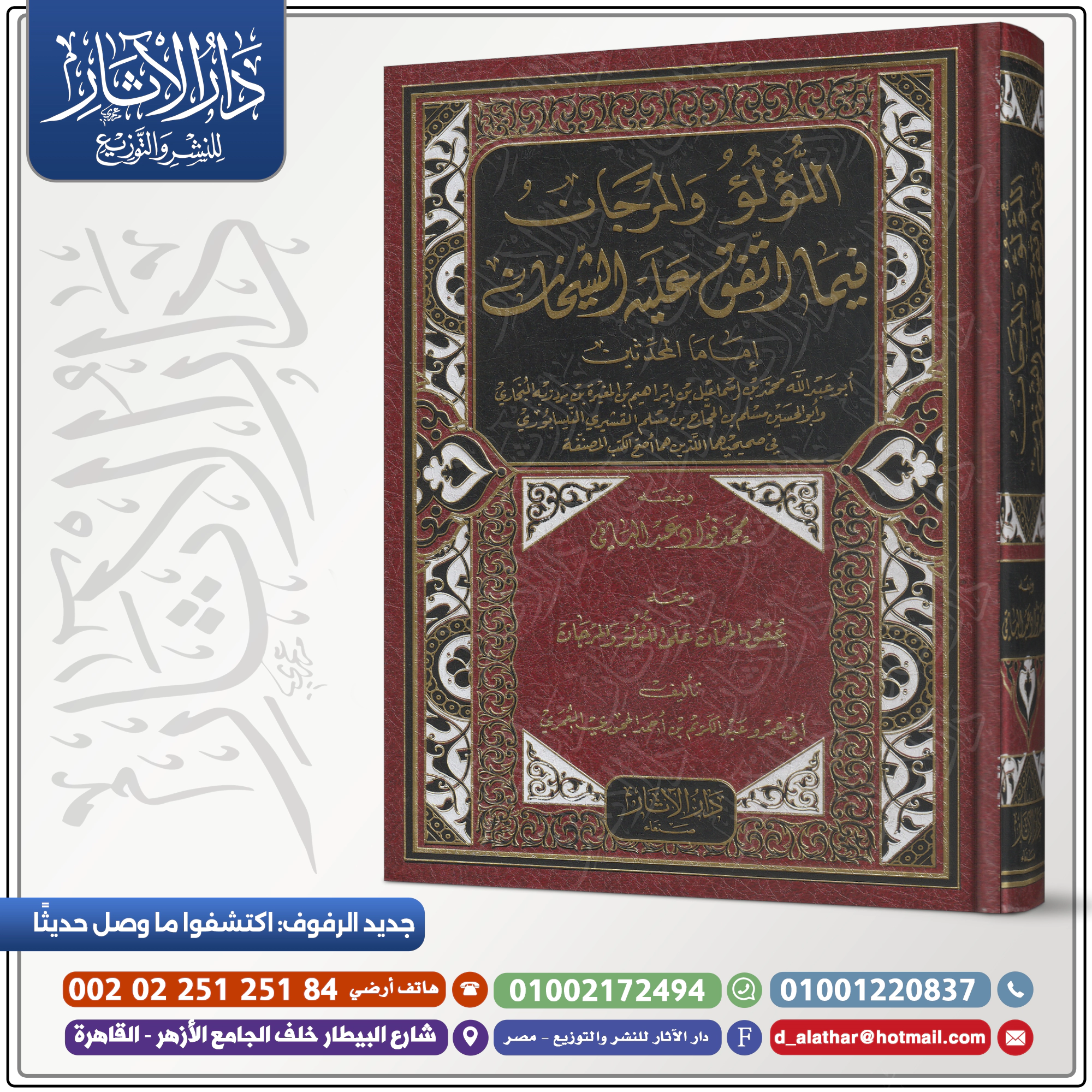 كتاب "اللؤلؤ والمرجان فيما اتفق عليه الشيخان"، جمعه ورتبه محمد فؤاد عبد الباقي، ليضم الأحاديث التي اتفق عليها الإمام البخاري والإمام مسلم في صحيحيهما.