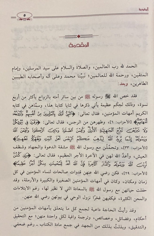 وقد رأيتُ الحاجة داعية لجمع كل ما يتعلق بأمهات المؤمنين من أحكام، وفضائل وخصائص وترجمة وافية لكل واحدة منهن؛ مع التحقيق والتدقيق، وبذلتُ بذلك من الجهد في جمع مادة الكتاب - رغم ضعفي وفقري وقلة علمي - ما يجعله مرجعًا مهما في بابه وسميته «الطاهرات»، استلالاً من قوله تعالى لهن : ﴿ وَيُطَهِّرَكُمْ تَطْهِيرًا) [الأحزاب: ٣٣]، راجيا من الله أن يجعله مرجعًا مهما لكل من أراد أن يعرف مكانة أمهات المؤمنين رضي الله عنهن .