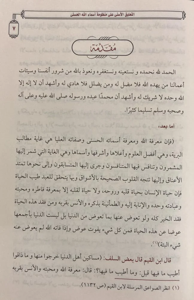 التعليق الأسنى على منظومة أسماء الله الحسنى