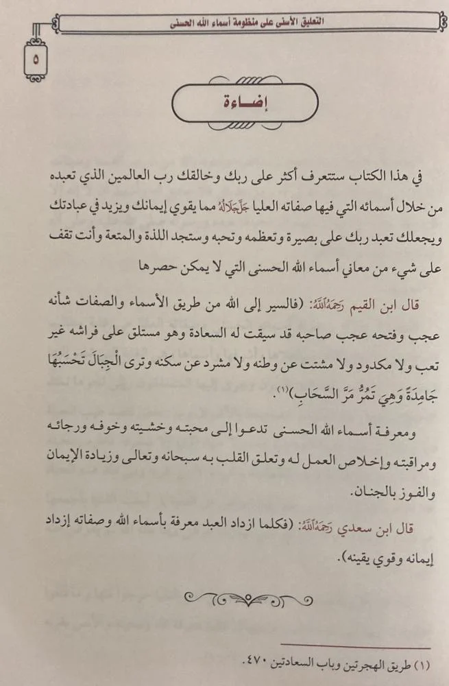 altaeliq al'asnaa ealaa manzumat 'asma' allah