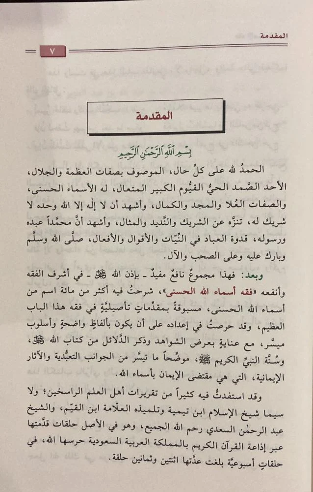فهذا مجموع نافع مفيد - بإذن الله ل ـ في أشرف الفقه وأنفعه «فقه أسماء الله الحسنى، شرحتُ فيه أكثر من مائة اسم من أسماء الله الحسنى مسبوقة بمقدِّماتٍ تأصيليَّة في فقه هذا الباب العظيم، وقد حرصتُ في إعداده على أن يكون بألفاظ واضحة وأسلوب ميسر، مع عناية بعرض الشواهد وذكر الدَّلائل من كتاب الله ، وسُنَّة النبي الكريم ، موضحاً ما تيسر من الجوانب التعبدية والآثار الإيمانية، التي هي مقتضى الإيمان بأسماء الله .
