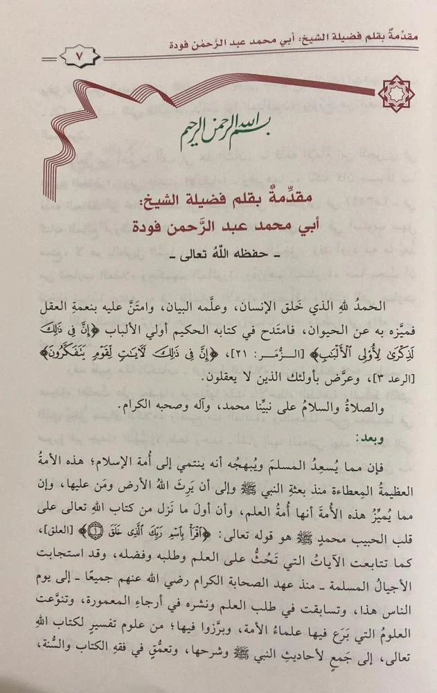 مقدمة بقلم فضيلة الشيخ: أبي محمد عبد الرحمن فودة - حفظه الله تعالى -