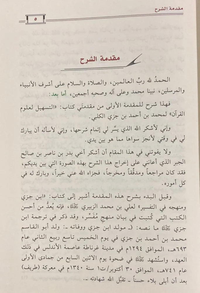 أما بعد: فهذا شرح للمقدمة الأولى من مقدمتَي كتاب: «التسهيل لعلوم القرآن لمحمد بن أحمد بن جزي الكلبي.