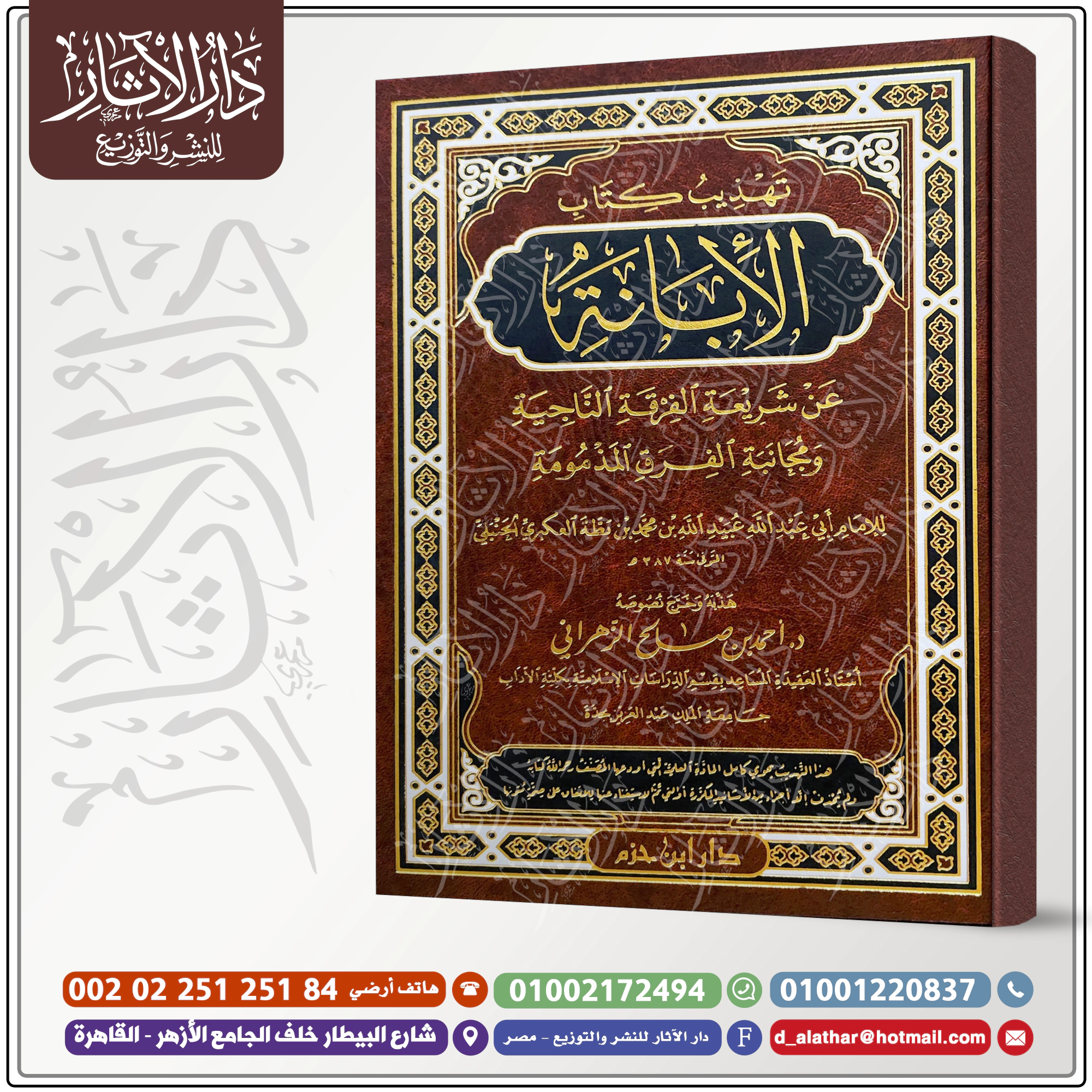 اسم الكتاب : تهذيب كتاب الابانة عن شريعة الفرقة الناجية ومجانبة الفرق المذمومة